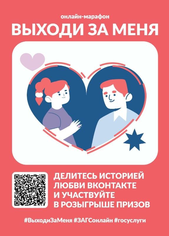 С 8 июля по 8 октября 2025 года в ВКонтакте проходит всероссийский марафон «Выходи за меня». Поделитесь моментом, когда поняли, что хотите связать себя узами брака с любимым человеком. Розыгрыш призов - каждую неделю и ежемесячно.
